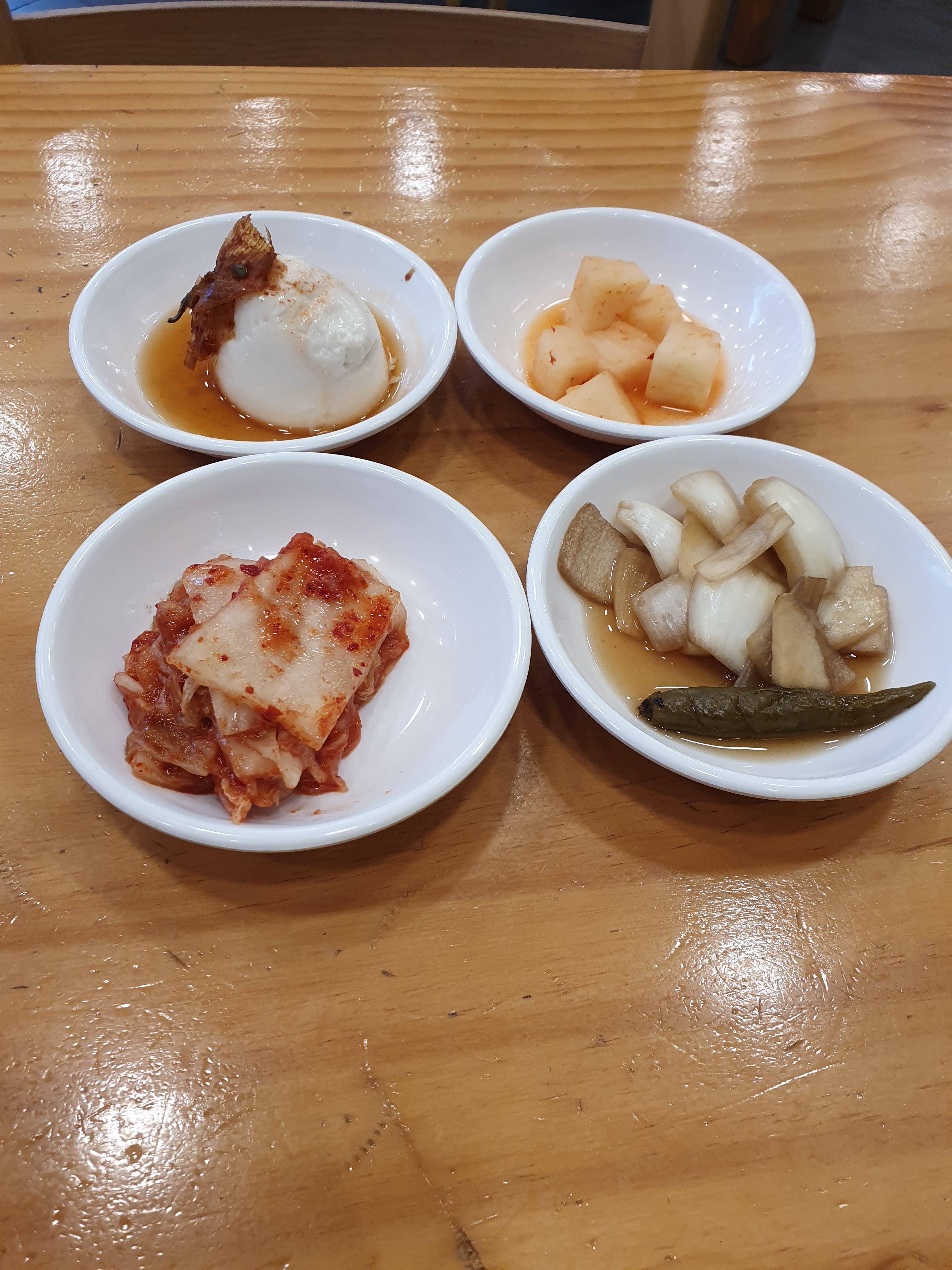 기본 반찬으로 김치 2종류(깍두기, 배추김치), 양파장아찌, 순두부가 나왔습니다. 각각의 반찬 맛은 평범했는데 김치는 달달한 편이었고, 순두부의 담백한 맛과 양파장아찌의 단맛이 짠맛의 뼈해장국과 맛이 잘 어울려 맛있게 먹었습니다.
